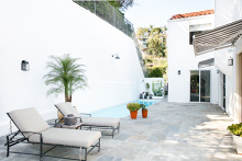 Gated and extra private, this u-shaped pavilion w/loads of character and slight modernist touch features a courtyard entry and a romantic pool area; fabulous...